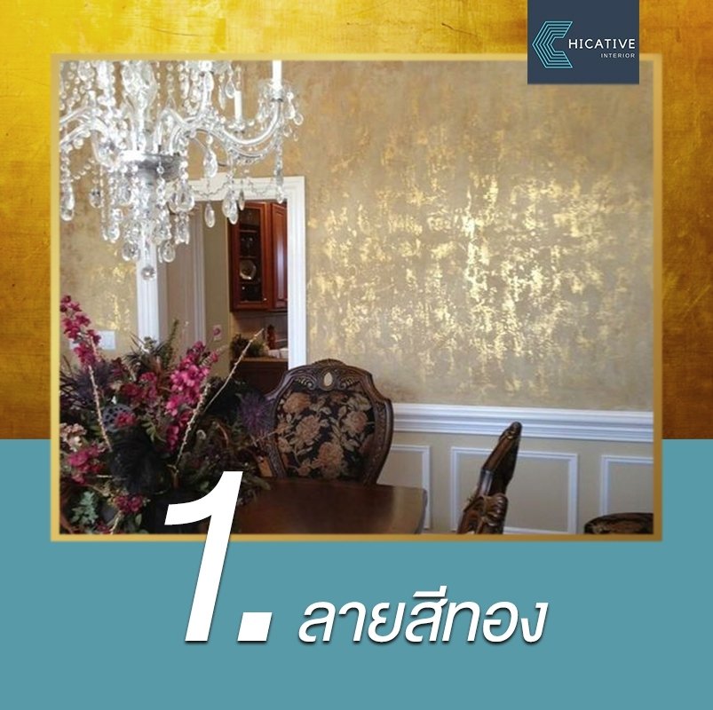 สีทองต้องมีลวดลายผสมหน่อยนะครับ ถ้าเป็นทองพื้นๆเลยอาจดูไม่สวย แต่เป็นทองแบบเบลอๆ และมีส่วนอื่นผสมทำให้ดูดีคลาสสิกมาก รอบห้องจะใช้เป็นสีน้ำตาลอ่อนก็ยังได้ ผมคงไม่ต้องเล่านะครับว่าทองดูแพงอย่างไร ลองไปเชคราคาตลาดดูได้ครับ บาทละแค่สองหมื่นเอง 555